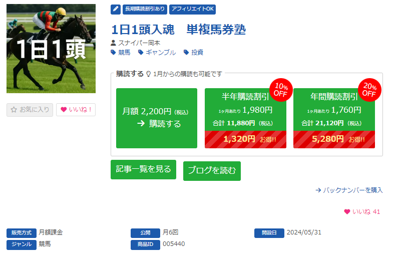 有料予想の穴馬特捜班noteは月内の中央競馬の予想が全て閲覧できる月初めの購読がおススメです。都度課金よりもお得な月額マガジンをこの機会に是非ご購読ください。