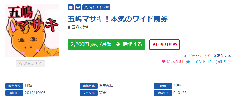月額メルマガや予想記事の販売などユーザーの用途に合わせた購読が可能