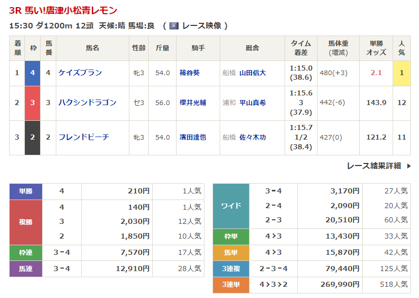 ◎フレンドビーチ(11人気)3着 複勝1,850円