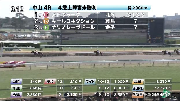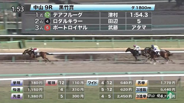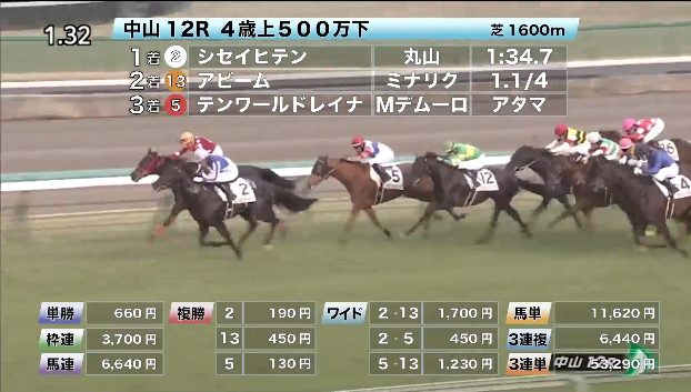 先週の配信の中での、大きな的中は月曜中山12Rの以下のレースでした。