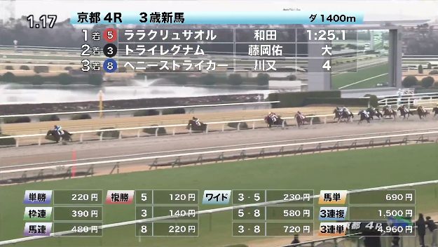 ◎ロダルキラー(5人気)2着 複勝310円 - 1/13【京都2R】3歳新馬