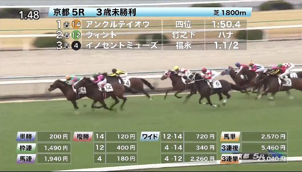 ◎ヴォージュ(5人気)1着 単勝2,330円、複勝320円 - 1/6【京都12R】1000万下