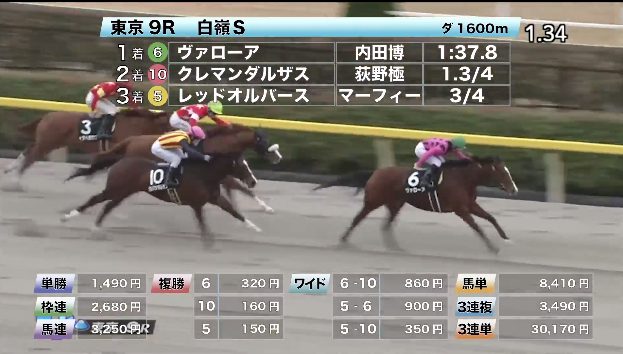 ◎ヴァローア(7人気)1着 単勝1,490円、複勝320円 - 1/26【東京10R】クロッカスステークス
