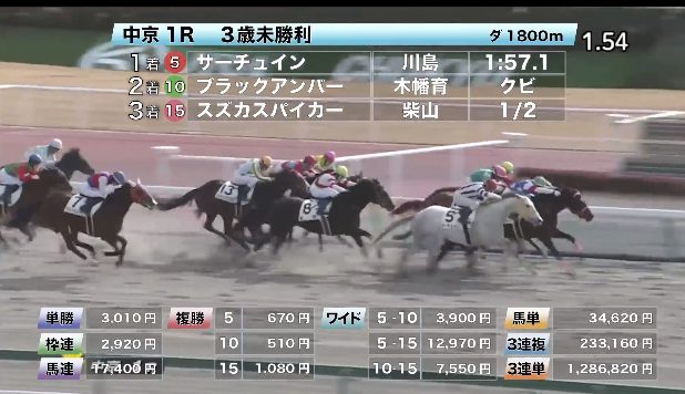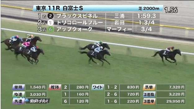◎ブラックスピネル(6人気)1着 単勝1,540円、複勝280円