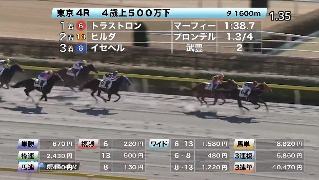 ◎トレジャートローヴ(6人気)3着 複勝270円 - 1/19【中山7R】500万下