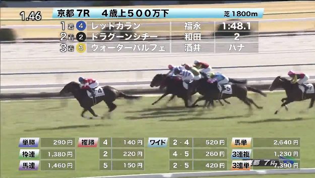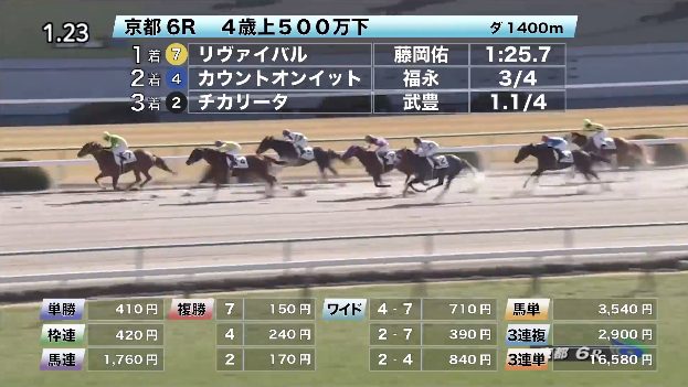 ◎ヴォージュ(5人気)1着 単勝2,330円、複勝320円 - 1/6【京都12R】1000万下