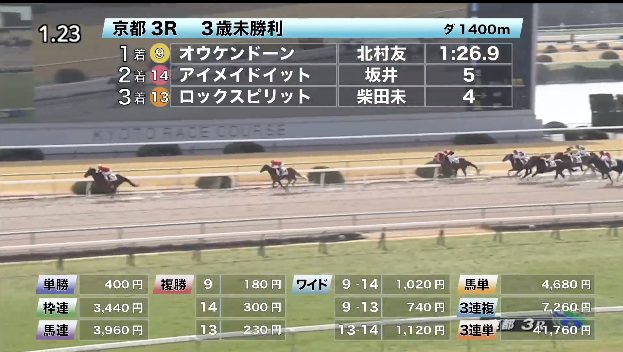 ◎ロダルキラー(5人気)2着 複勝310円 - 1/13【京都2R】3歳新馬