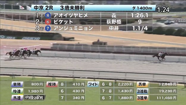 ◎アオイツヤヒメ(5人気)1着 単勝800円、複勝410円