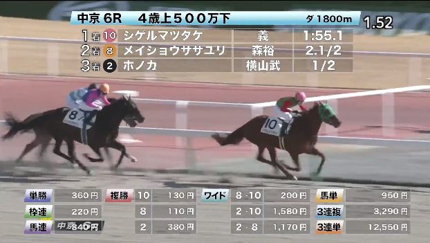 ◎ジョブックコメン(4人気)2着 複勝290円 - 1/19【中山8R】500万下