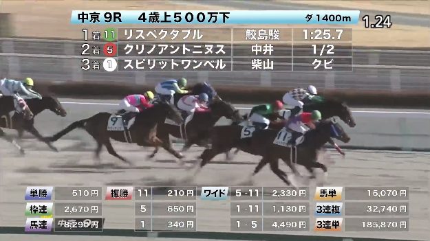 ◎ ジャスティン(6人気)1着 単勝1,420円、複勝320円 - 1/19【中京11R】中京スポニチ賞