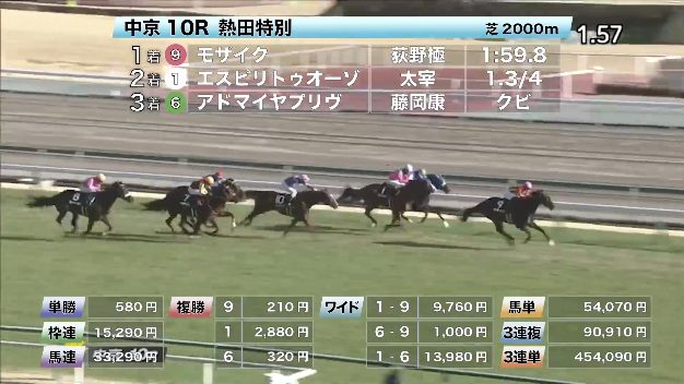 ◎ジャスパーウィン(6人気)2着 複勝510円 - 1/14【中山12R】1000万下