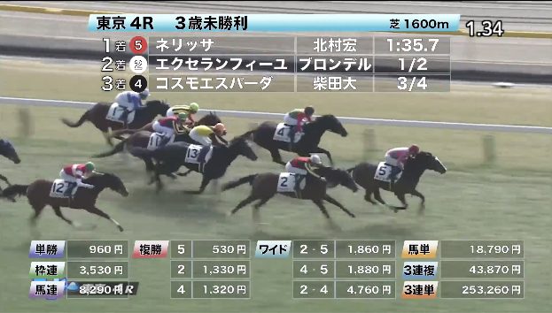 ◎ハバナウインド(4人気)1着 単勝780円、複勝180円 - 2/10【東京2R】3歳未勝利