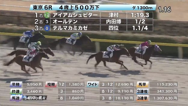 ◎ミュートエアー(6人気)1着 単勝1,580円、複勝360円