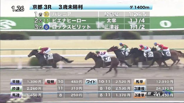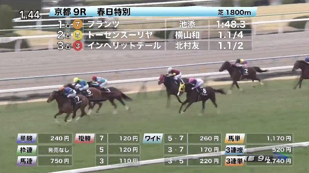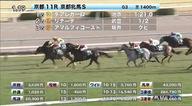 ◎ブルベアイリーデ(4人気)1着 単勝750円、複勝140円 - 2/3【京都11R】きさらぎ賞