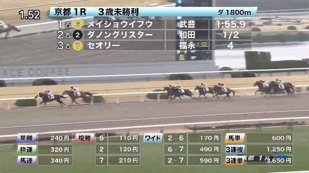 ◎ヤマニンスプレモ(4人気)1着 単勝710円、複勝170円 - 2/3【京都3R】3歳未勝利