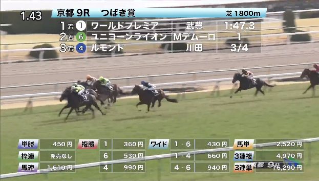 ◎ルモンド(5人気)3着 複勝990円 - 2/16【京都11R】京都牝馬ステークス