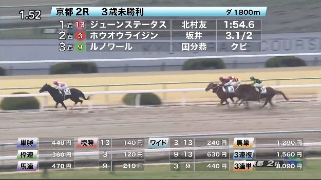 | 2/16 京都 | 12R | 11R | 91.7% |
