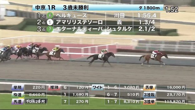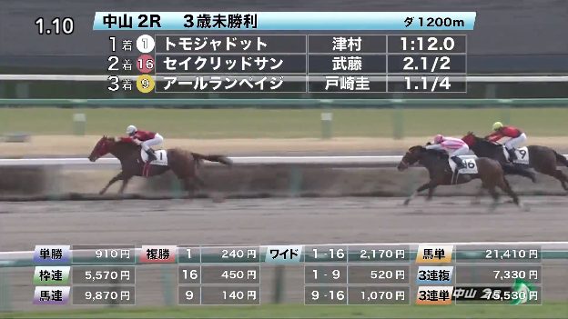 ◎トモジャドット(5人気)1着 単勝910円、複勝240円