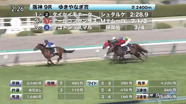 ◎タイセイモナーク(5人気)1着 単勝2,400円、複勝480円
