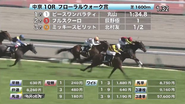 ◎ピースプレイヤー(6人気)2着 複勝370円