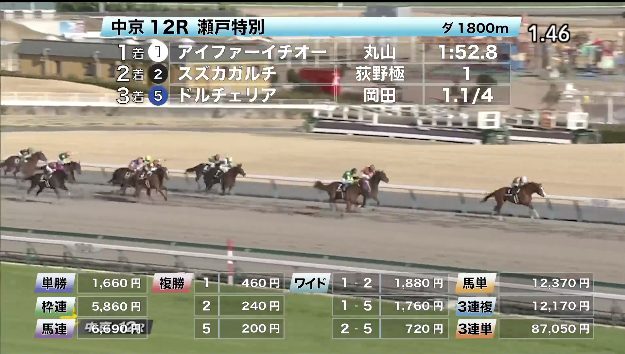 ◎アイファーイチオー(9人気)1着 単勝1,660円、複勝460円