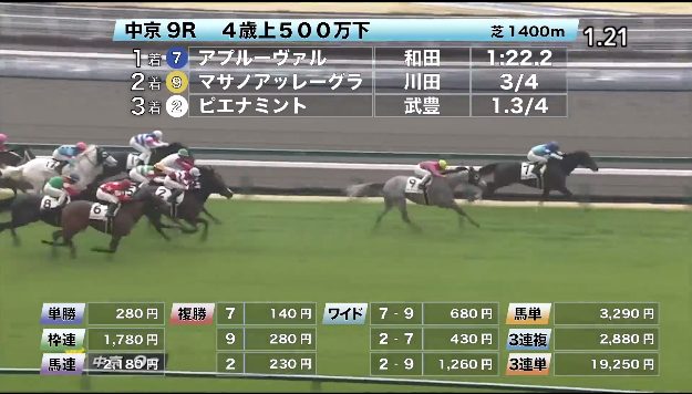 ◎マサノアッレーグラ(7人気)2着 複勝280円