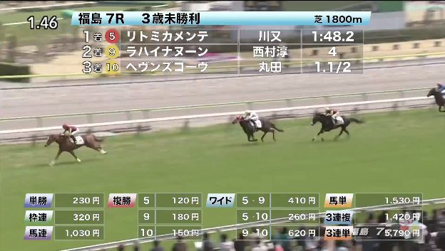 ◎ラハイナヌーン(4人気)2着 複勝180円