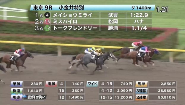 ◎ミスパイロ(6人気)2着 複勝380円 - 6/9【東京10R】江の島特別