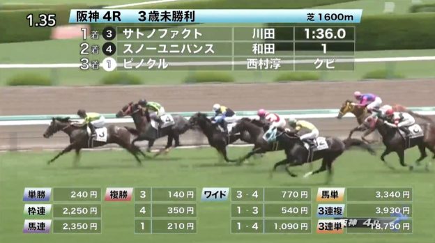 ◎プリモプレミオ(6人気)1着 単勝1,180円、複勝340円 - 6/5【阪神5R】2歳新馬
