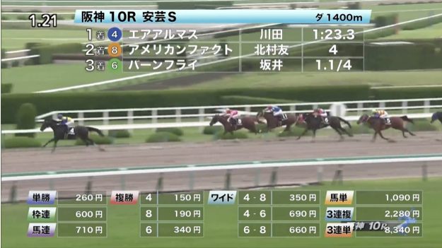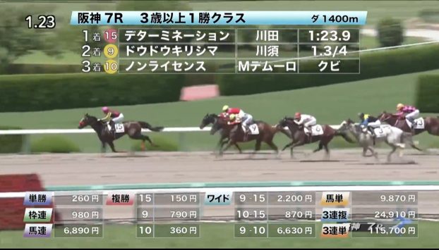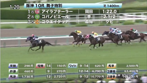 ◎ドウドウキリシマ(9人気)2着 複勝790円 - 6/9【阪神10R】安芸ステークス