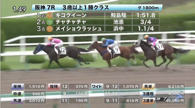 ◎キコクイーン(7人気)1着 単勝1,910円、複勝310円