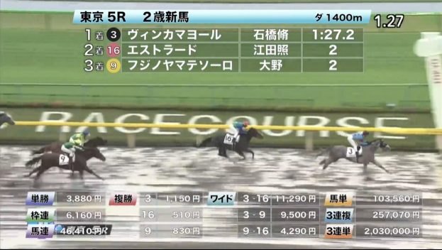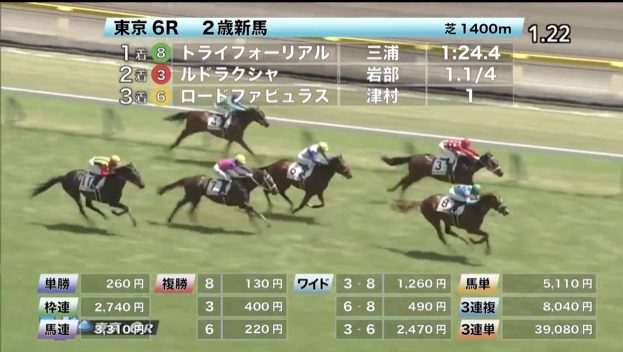 ◎ファンタスティック(6人気)1着 単勝970円、複勝250円