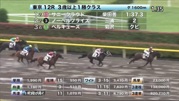 ◎ノーベルプライズ(6人気)2着 複勝510円