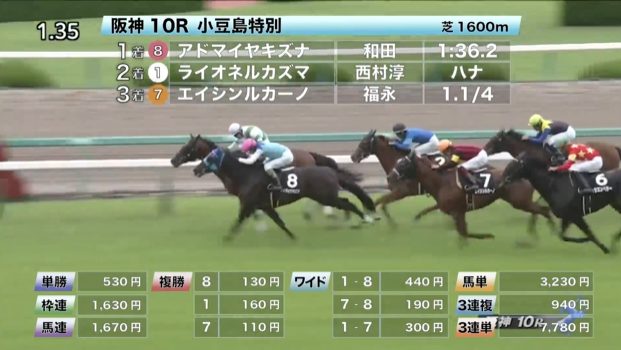 ◎ドウドウキリシマ(9人気)2着 複勝790円 - 6/9【阪神10R】安芸ステークス