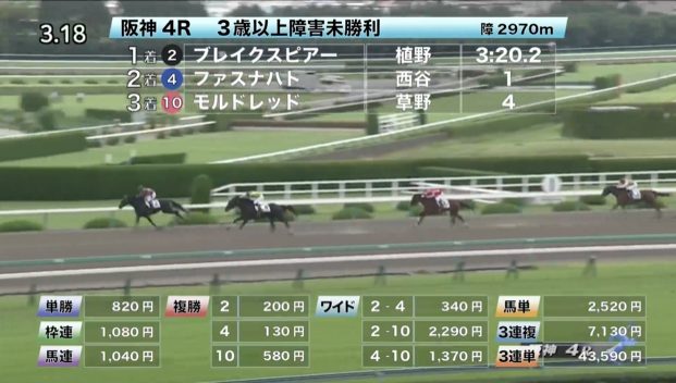 ◎ブレイクスピアー(4人気)1着 単勝820円、複勝200円