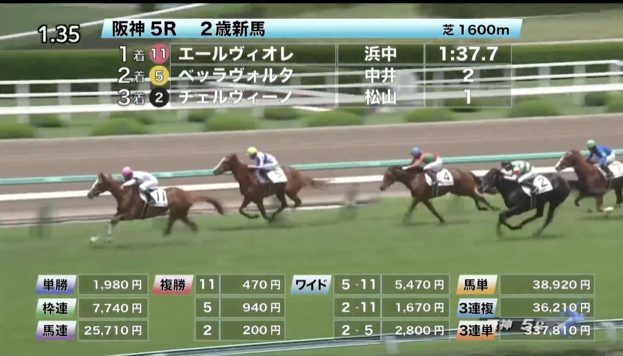 ◎プリモプレミオ(6人気)1着 単勝1,180円、複勝340円 - 6/5【阪神5R】2歳新馬