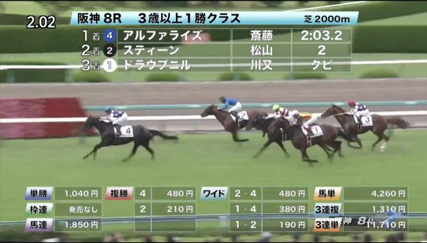 ◎アルファライズ(5人気)1着 単勝1,040円、複勝480円