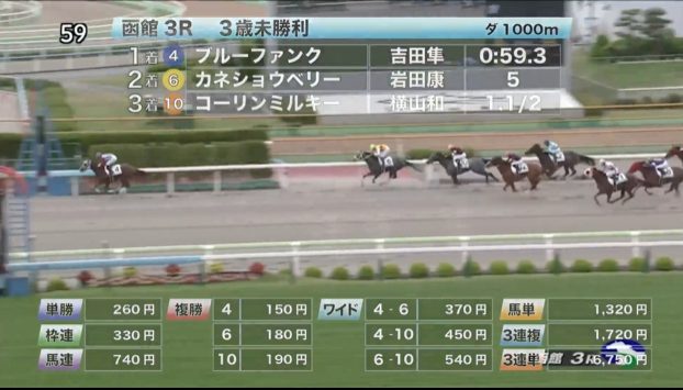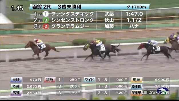 ◎ファンタスティック(6人気)1着 単勝970円、複勝250円 - 6/15【函館3R】3歳未勝利