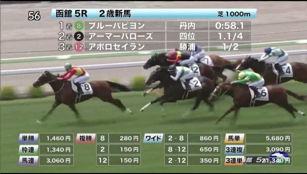 ◎ライオネルカズマ(5人気)2着 複勝160円 - 6/15【函館2R】3歳未勝利