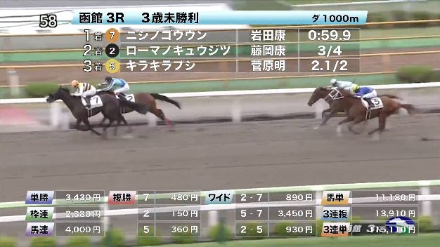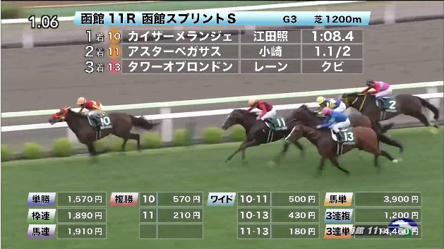 ◎ニシノゴウウン(6人気)1着 単勝3,430円、複勝480円 - 6/16【函館11R】函館スプリントステークス