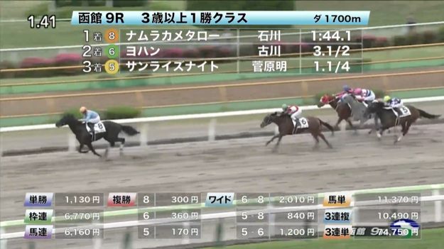 ◎ナムラカメタロー(5人気)1着 単勝1,130円、複勝300円 - 6/29【函館12R】洞爺湖特別