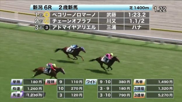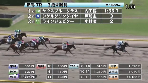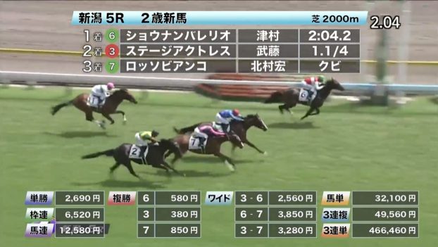 ◎ショウナンバレリオ(6人気)1着 単勝2,690円、複勝580円 - 8/17【新潟7R】3歳未勝利