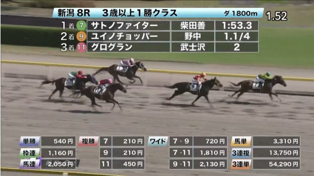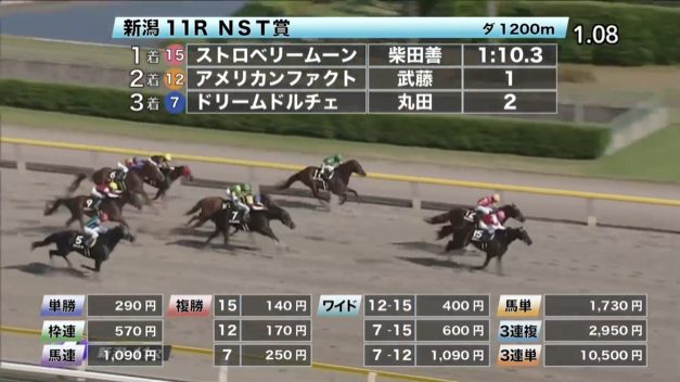 新潟競馬は土日で9Rの的中でした。日曜のメインのNST賞は堅い決着ながらも相手馬を含めてパーフェクトの的中となりました。3会場の中では一番的中数は少なかったものの安定した成績を残すことができました。