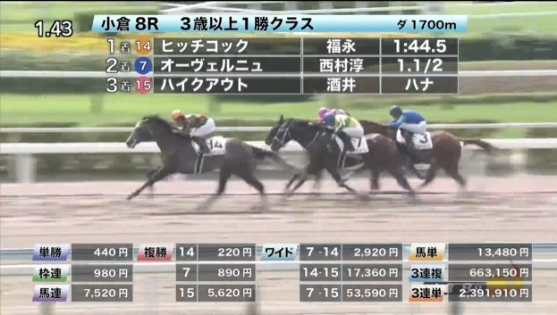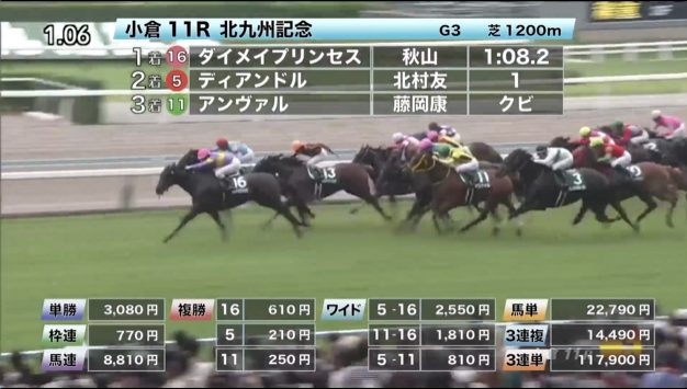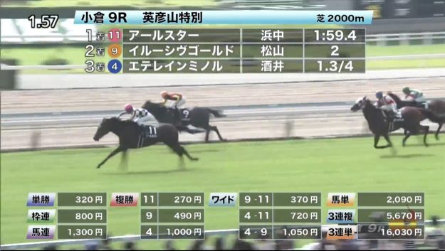 ◎オーヴェルニュ(11人気)2着 複勝890円 - 8/17【小倉9R】英彦山特別