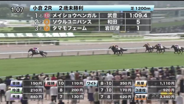 ◎ベルウッドコチョウ(8人気)2着 複勝1,210円 - 8/10【小倉2R】2歳未勝利