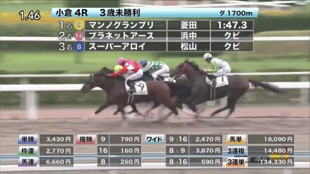 ◎マンノグランプリ(9人気)1着 単勝3,430円、複勝790円