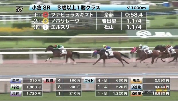 ◎エルズリー(4人気)3着 複勝210円 - 8/18【小倉9R】英彦山特別