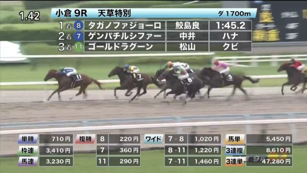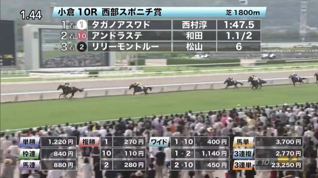 ◎ゼンノジャスタ(5人気)2着 複勝190円 - 8/10【小倉12R】3歳以上1勝クラス