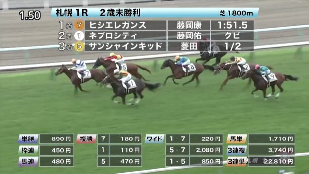 ◎メイショウオトワ(6人気)1着 単勝1,870円、複勝370円 - 8/3【札幌5R】2歳新馬