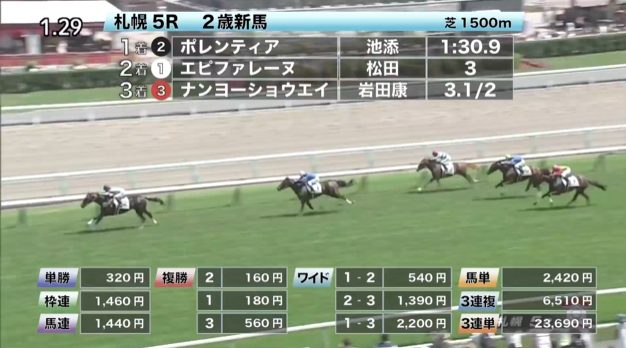 ◎ストレガ(7人気)2着 複勝390円 - 8/3【札幌4R】3歳未勝利